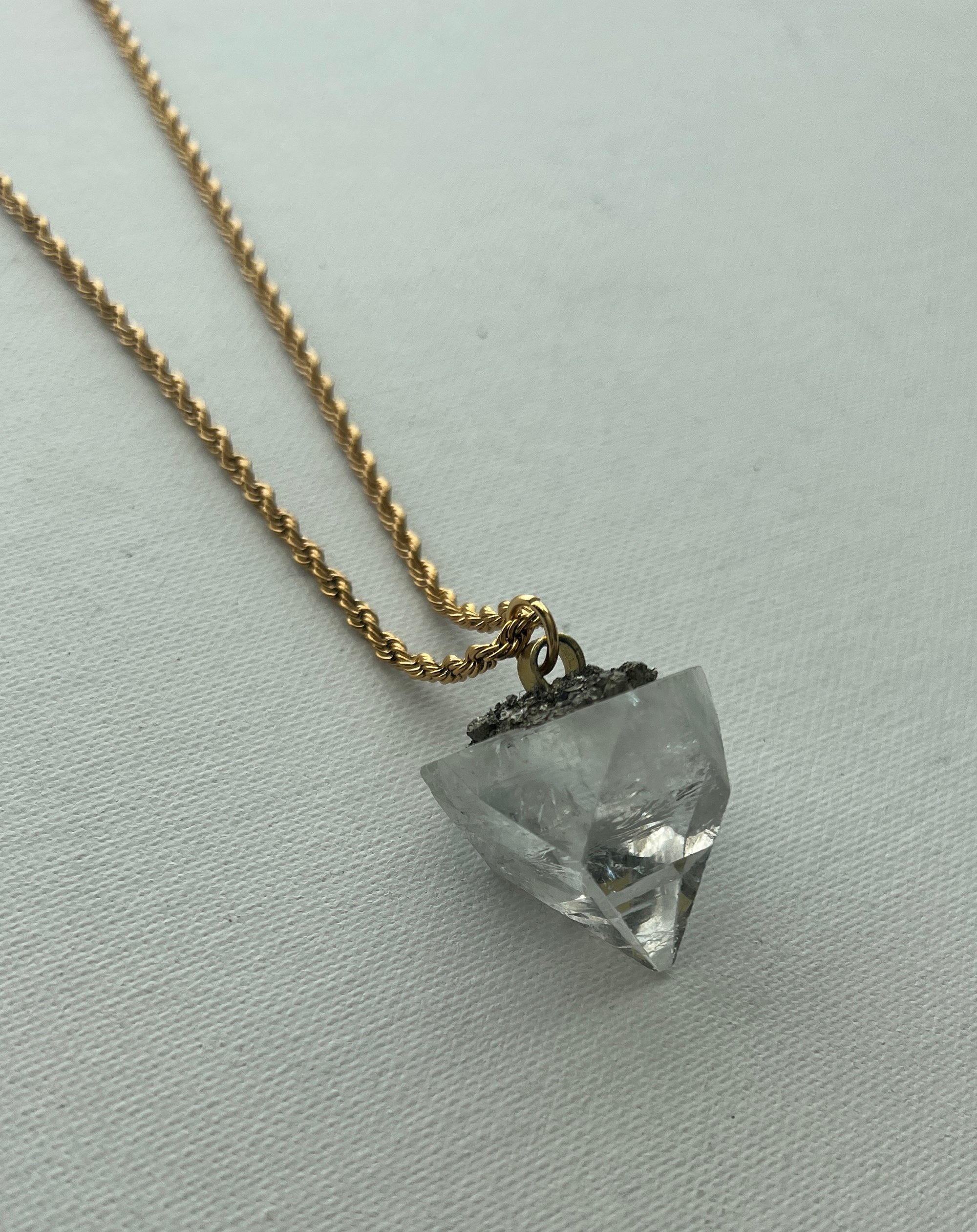 Apophyllite pendant on 29in stainless steel steel chain.